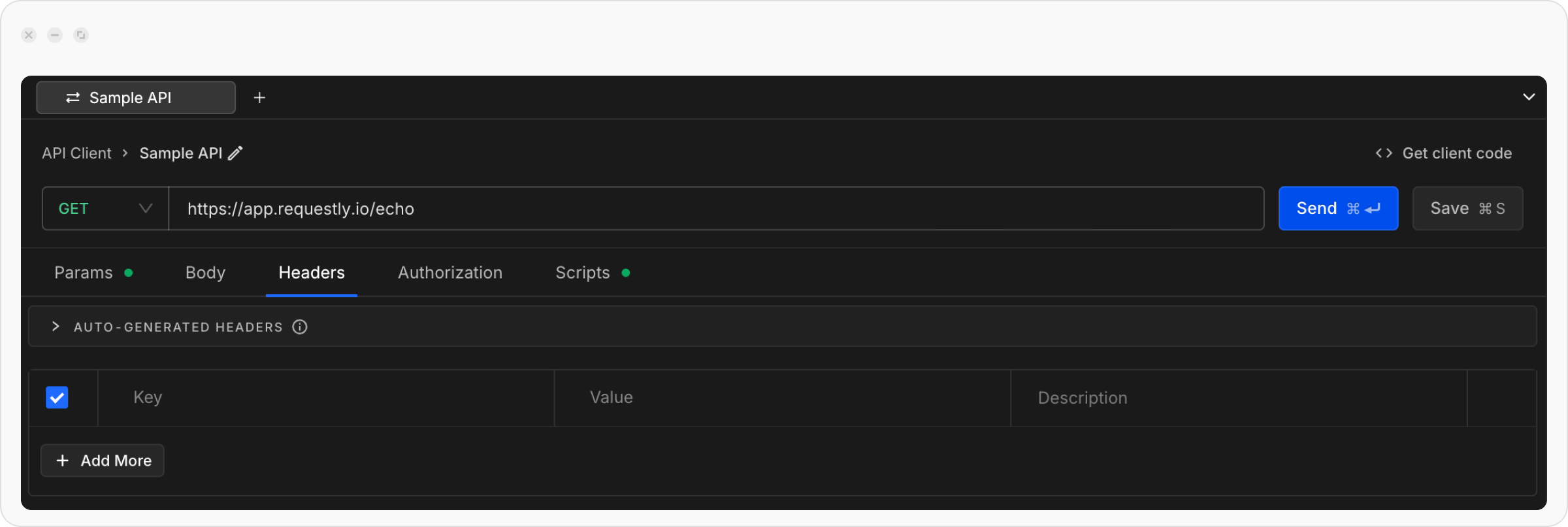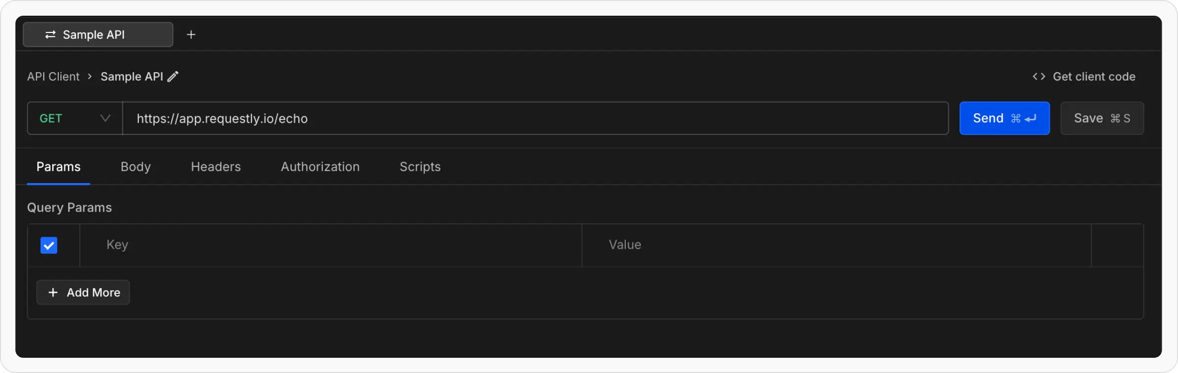 An API Request can be created in two ways: using the+ New button on the top left or from within a collection. The request creation process remains the same after that: