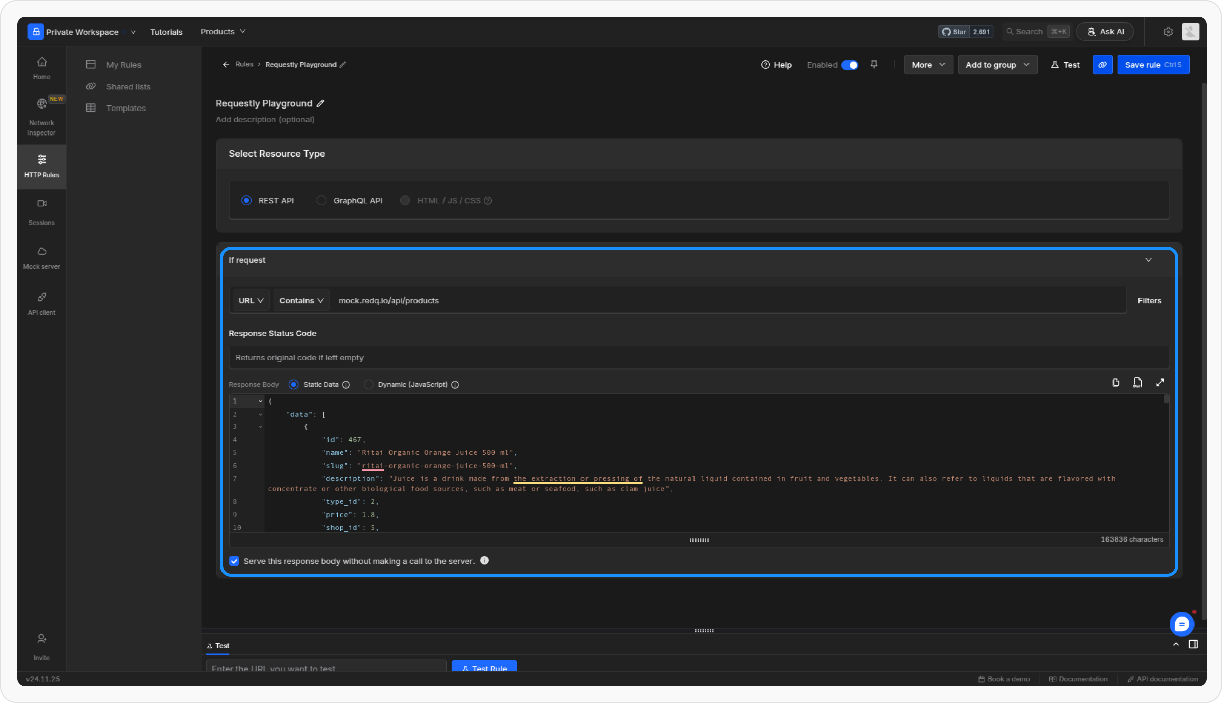 Once you’ve recorded an API session, you can easily generate bulk mock rules based on the captured requests. This is a quick way to mock multiple API endpoints without manually configuring each one.1