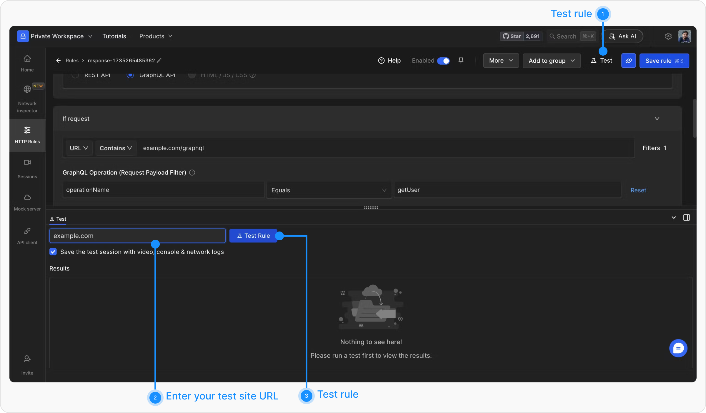 If you need to alter the GraphQL query or its variables, use the Modify Request Body rule to change the request payload dynamically.Steps to Modify Request Body