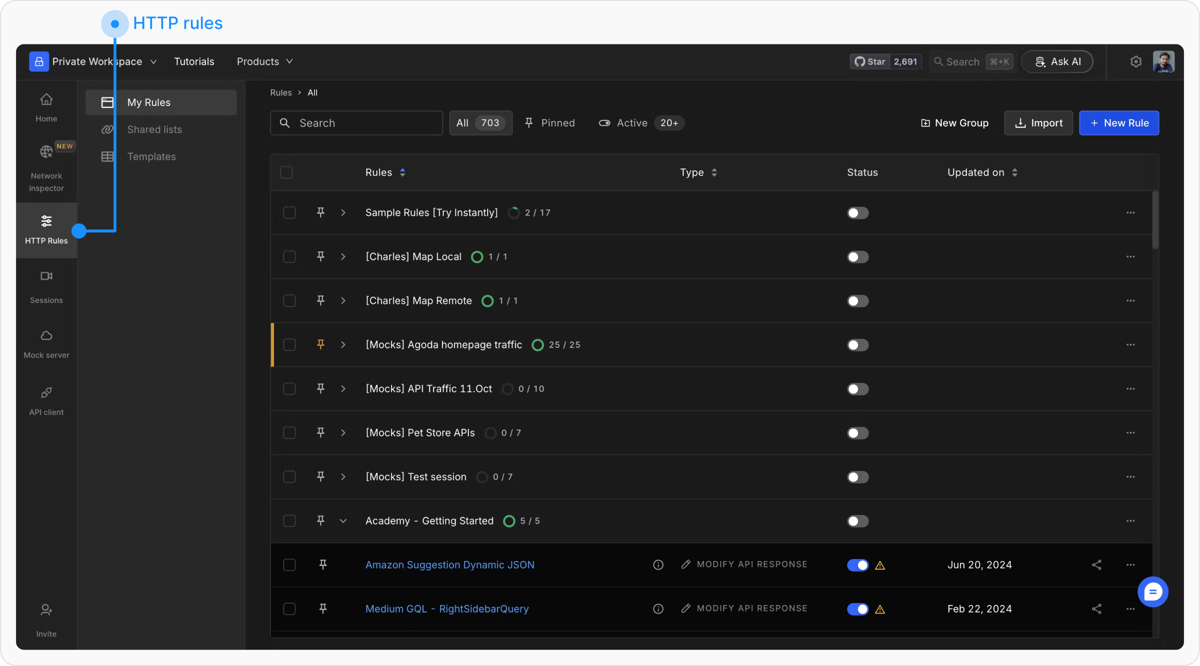 Navigate to the HTTP Rules tab in the web or desktop app.