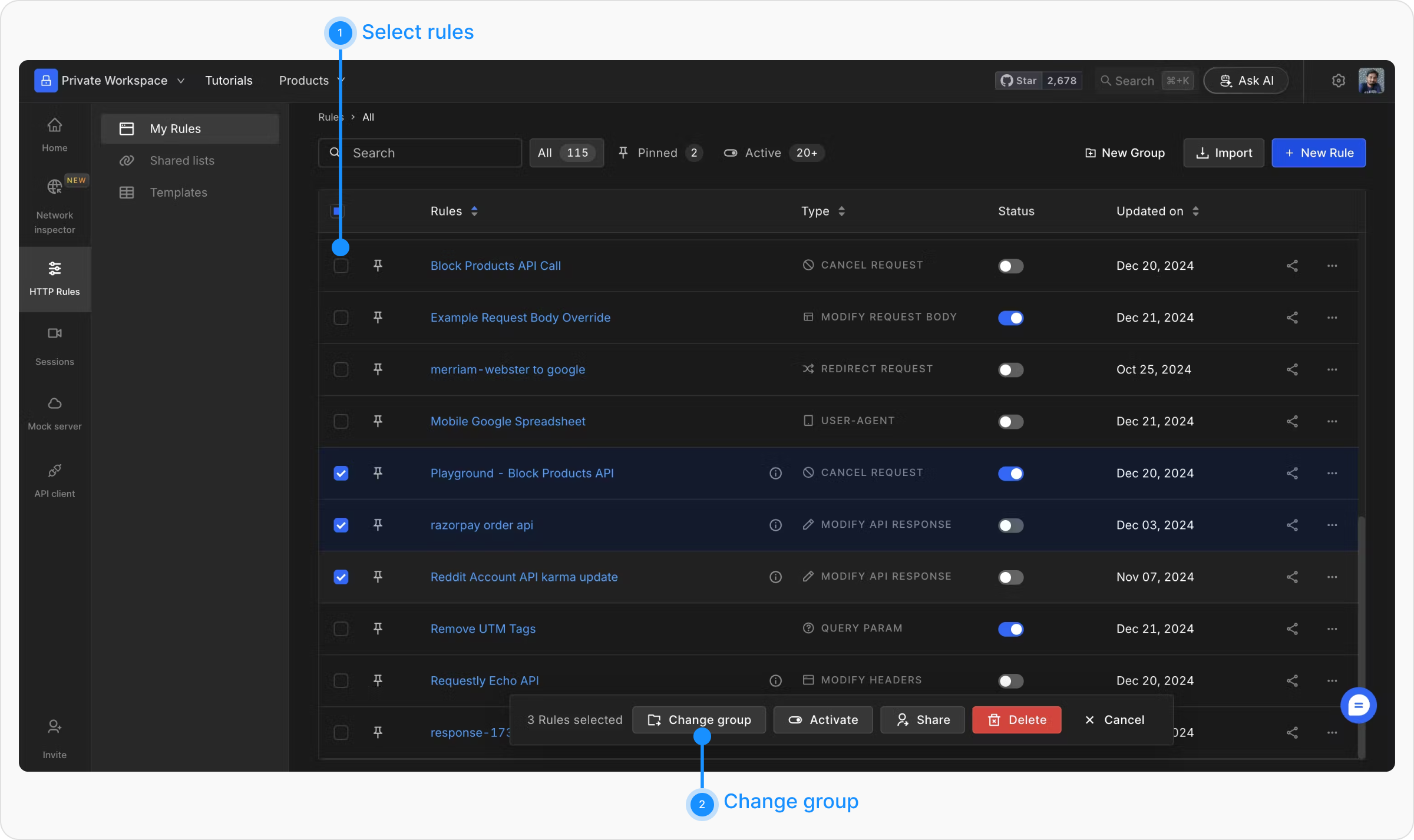 Once your rules are grouped, you can enable or disable an entire group in one go. This is particularly useful when managing rules for different projects or environments.