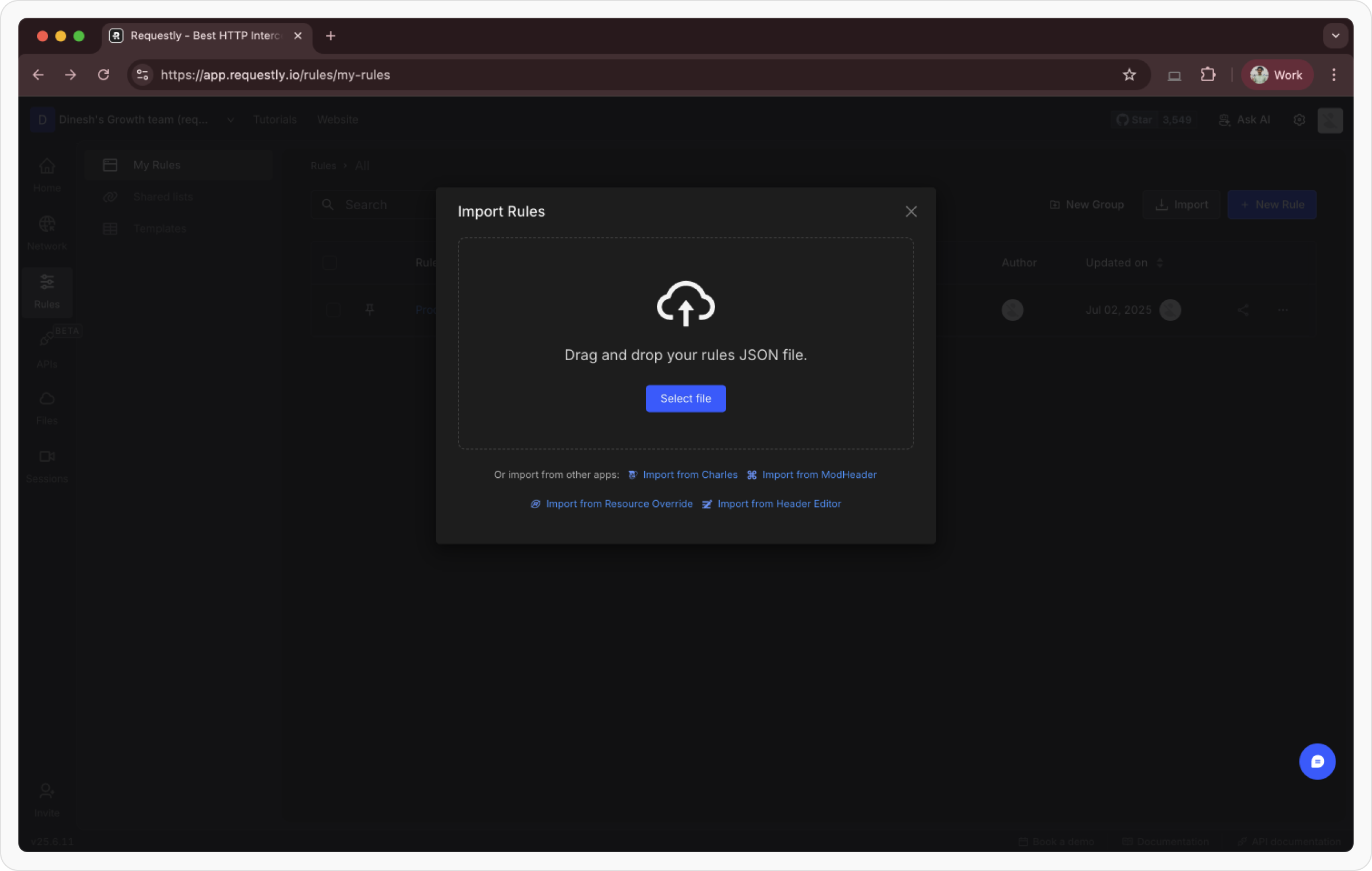 Once the file is processed successfully, your Header Editor configurations will be automatically converted into Requestly rules. Review and confirm them in your dashboard.