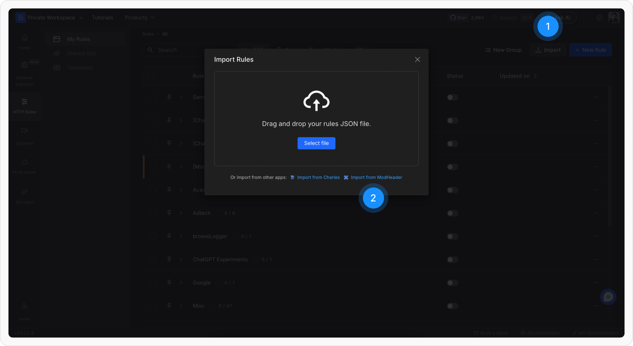 Follow the on-screen instructions to upload the JSON file you downloaded from ModHeader.