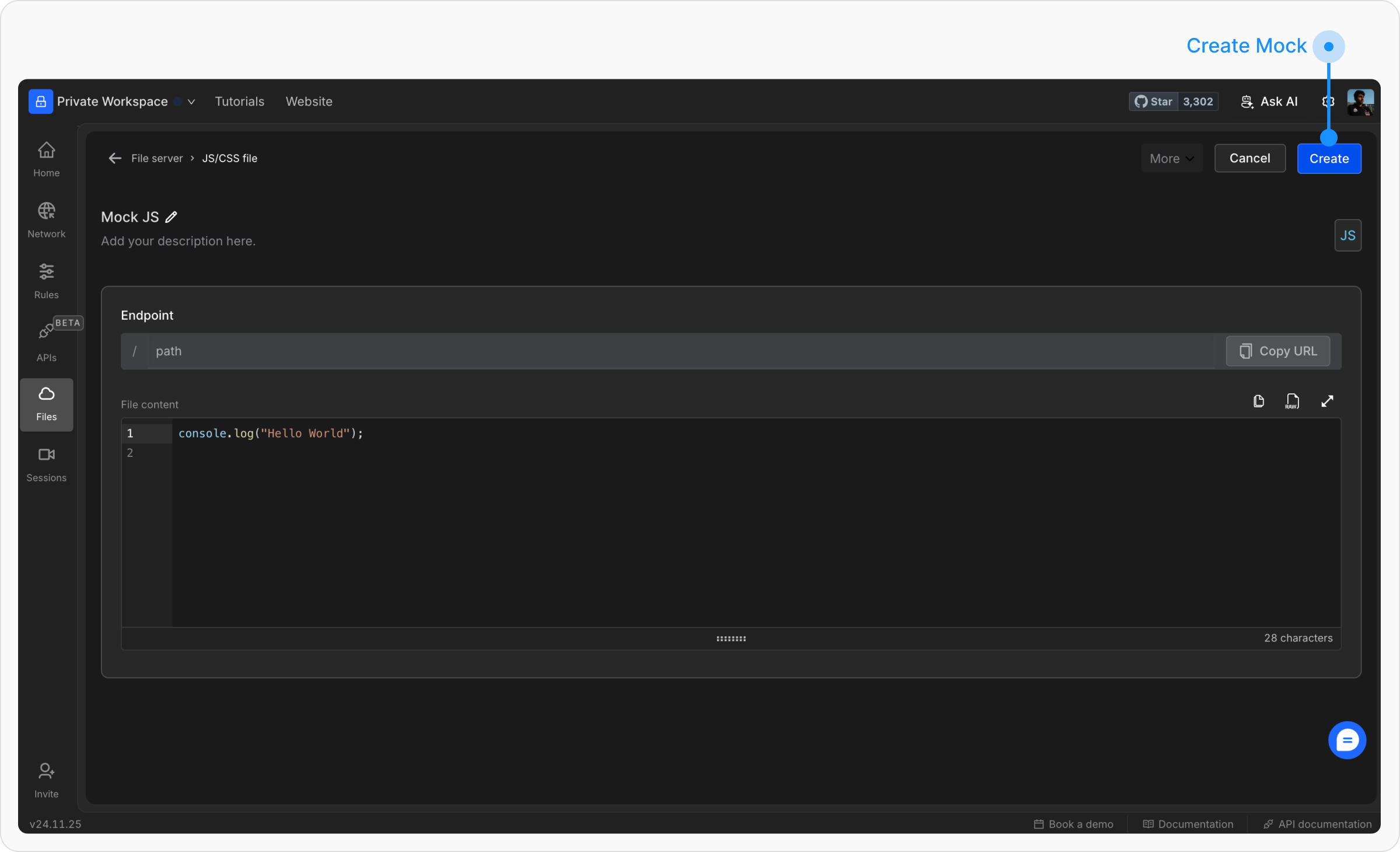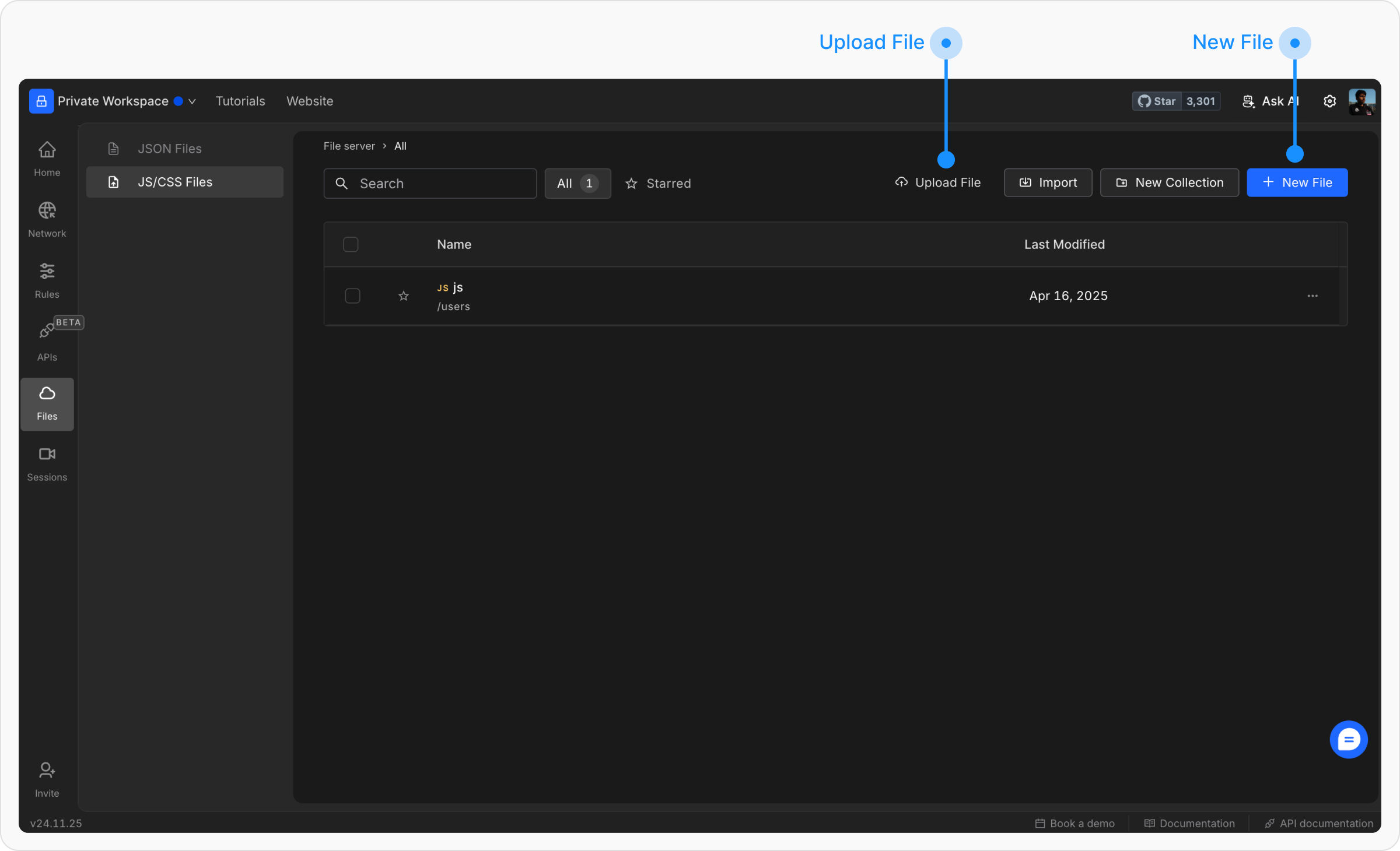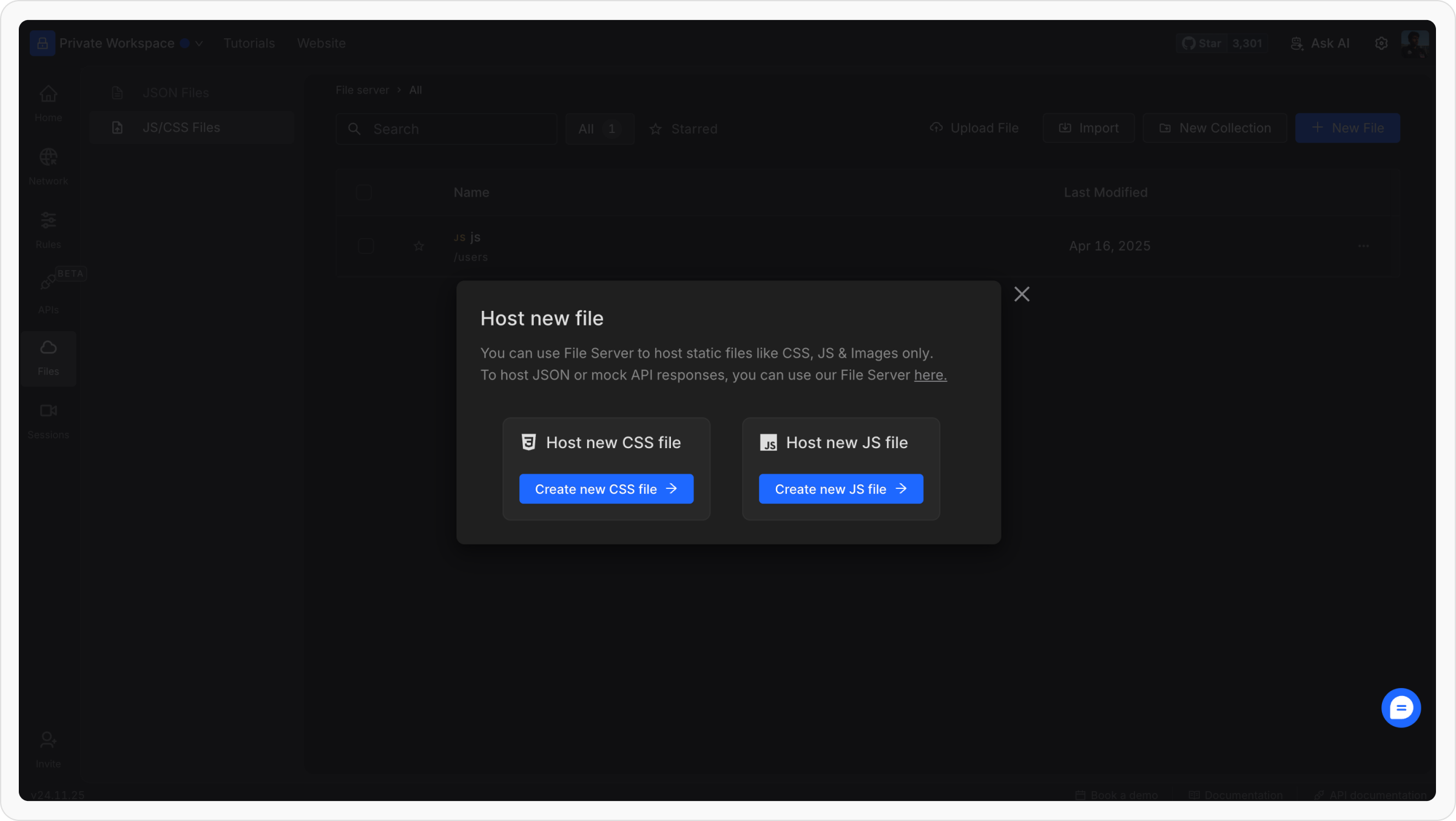 From the Requestly dashboard, click on “Files” then “JS/CSS Files” in the left menu bar.